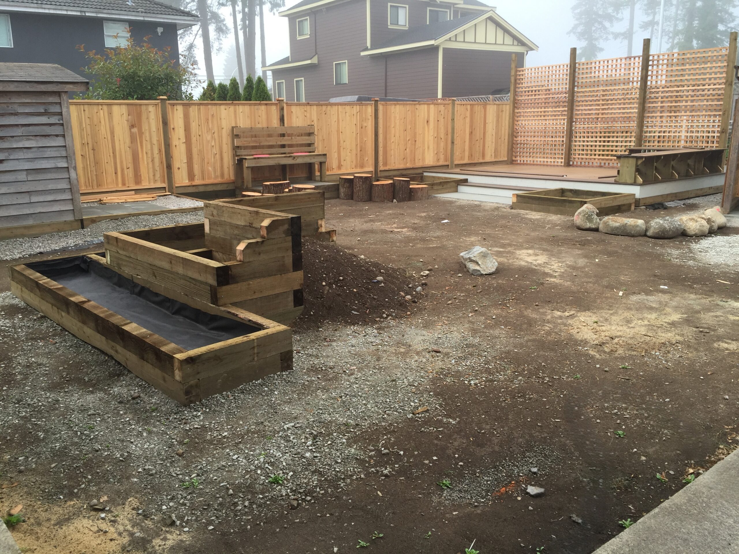 - Flower box construction and decorative landscaping features.